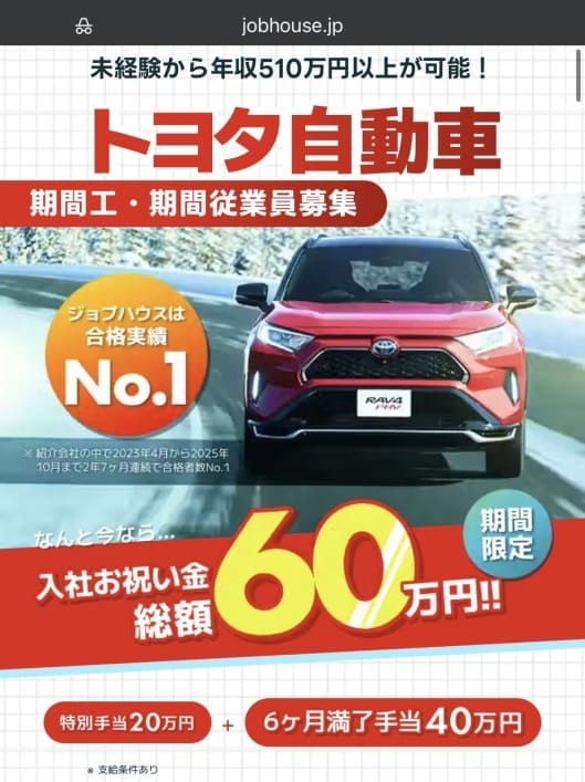 →2026年2月!トヨタ期間工の入社祝い金が60万円に!この機会を見逃すと損かも