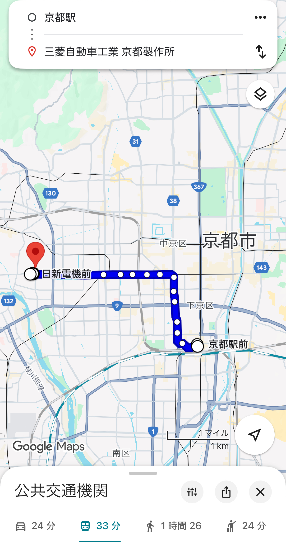 京都製作所から京都駅までも近く、車や電車で23分ほどとなっています。