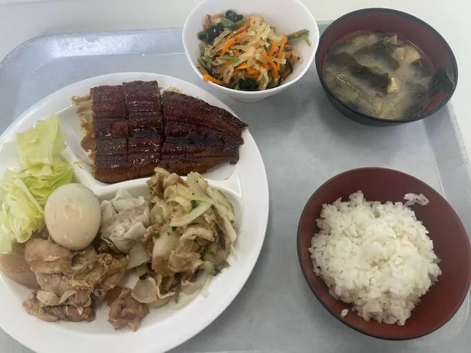 食事の評価:「食堂のメニューは豊富で味も普通に美味しい。肉系、魚系、揚げ物、スイーツまであって飽きない。何より無料なのがありがたい。」