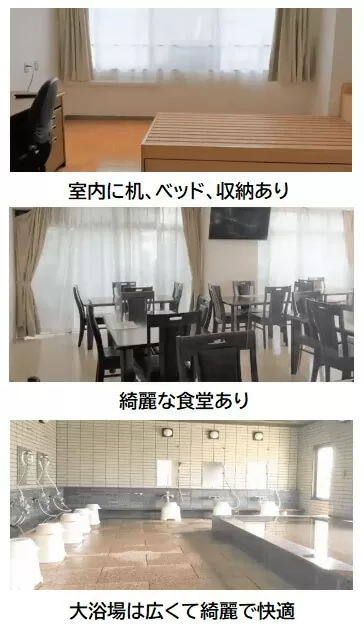 - 寮費・食費・水道光熱費:全て無料