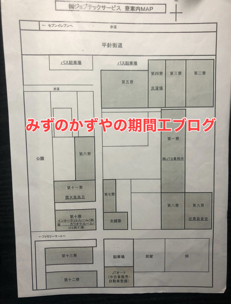 上記の画像は、僕が橋目寮に住むことになって際にもらった三菱期間工の全ての寮の紙です。